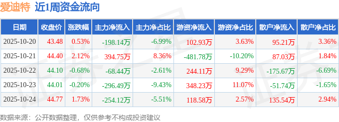 资金流向数据方面,本周爱迪特主力资金合计净流出422.44万元,游资资金合计净流入332.07万元,散户资金合计净流入90.37万元。本周资金流向一览见下表: