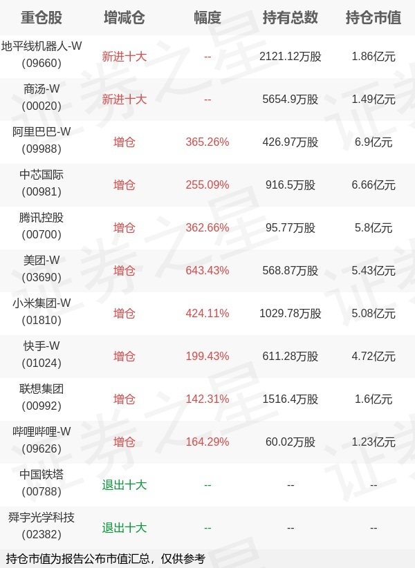 证券之星消息,10月27日银华基金旗下李宜璇管理的银华恒生港股通中国科技交易型开放式指数基金公布三季报,近1年净值增长率52.27%。与上一季度相比,该基金前十大重仓股新增地平线机器人-W,商汤-W;并对阿里巴巴-W增仓335.2万股,为该基金第一大重仓股;中国铁塔,舜宇光学科技等退出前十大重仓股;详细数据如下: