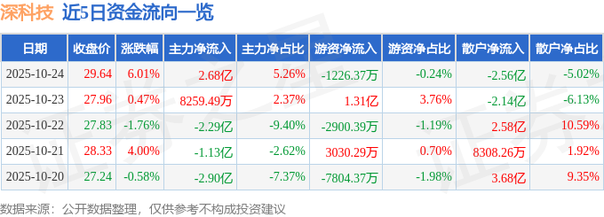 10月24日的资金流向数据方面,主力资金净流入2.68亿元,占总成交额5.26%,游资资金净流出1226.37万元,占总成交额0.24%,散户资金净流出2.56亿元,占总成交额5.02%。