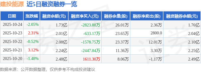 证券之星消息,截至2025年10月24日收盘,建投能源(000600)报收于9.55元,下跌2.05%,换手率5.08%,成交量55.36万手,成交额5.29亿元。