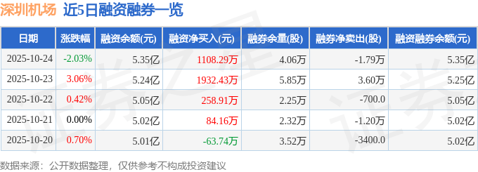 证券之星消息,截至2025年10月24日收盘,深圳机场(000089)报收于7.25元,下跌2.03%,换手率1.57%,成交量32.16万手,成交额2.34亿元。