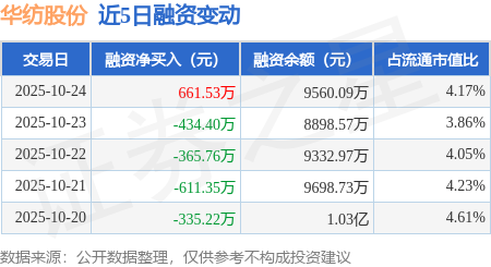 证券之星消息,10月24日,华纺股份(600448)融资买入1329.5万元,融资偿还667.98万元,融资净买入661.53万元,融资余额9560.09万元。