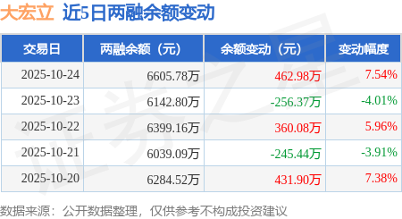 证券之星消息,10月24日,大宏立(300865)融资买入1406.67万元,融资偿还943.69万元,融资净买入462.98万元,融资余额6605.78万元。