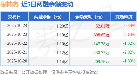 证券之星消息,10月24日,思林杰(688115)融资买入1841.08万元,融资偿还1789.08万元,融资净买入52.01万元,融资余额1.2亿元。