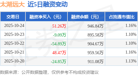 证券之星消息,10月24日,太湖远大(920118)融资买入64.12万元,融资偿还12.86万元,融资净买入51.26万元,融资余额946.84万元。