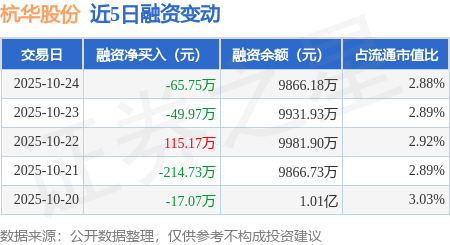 证券之星消息,10月24日,杭华股份(688571)融资买入311.95万元,融资偿还377.7万元,融资净卖出65.75万元,融资余额9866.18万元。