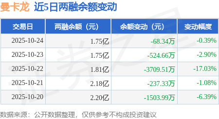 证券之星消息,10月24日,曼卡龙(300945)融资买入2184.43万元,融资偿还2252.78万元,融资净卖出68.34万元,融资余额1.75亿元。