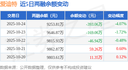 证券之星消息,10月24日,爱迪特(301580)融资买入442.01万元,融资偿还835.07万元,融资净卖出393.07万元,融资余额9253.36万元。