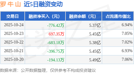 证券之星消息,10月24日,罗 牛 山(000735)融资买入2078.2万元,融资偿还2854.62万元,融资净卖出776.42万元,融资余额5.37亿元。