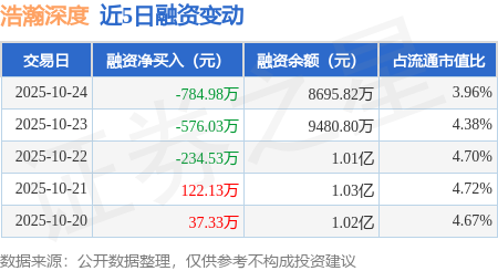 证券之星消息,10月24日,浩瀚深度(688292)融资买入464.38万元,融资偿还1249.36万元,融资净卖出784.98万元,融资余额8695.82万元。