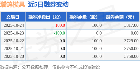 证券之星消息,10月24日,瑞鹄模具(002997)融资买入1465.24万元,融资偿还2251.43万元,融资净卖出786.19万元,融资余额5.57亿元。