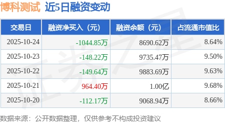 证券之星消息,10月24日,博科测试(301598)融资买入1005.88万元,融资偿还2050.73万元,融资净卖出1044.85万元,融资余额8690.62万元,近20个交易日中有12个交易日出现融资净买入。