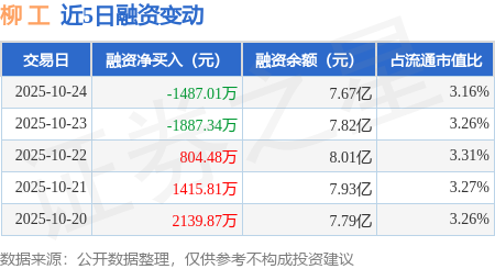 证券之星消息,10月24日,柳 工(000528)融资买入5416.36万元,融资偿还6903.37万元,融资净卖出1487.01万元,融资余额7.67亿元,近20个交易日中有12个交易日出现融资净买入。
