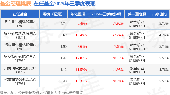 证券之星消息,截止2025年三季度末,基金经理梁辰旗下共管理6只基金,本季度表现最佳的为招商研究优选股票A(008261),季度净值涨42.24%。