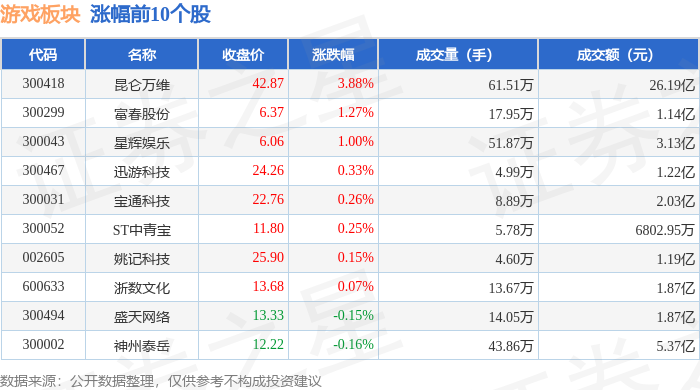 证券之星消息,10月27日游戏板块较上一交易日下跌2.33%,游族网络领跌。当日上证指数报收于3996.94,上涨1.18%。深证成指报收于13489.4,上涨1.51%。游戏板块个股涨跌见下表: