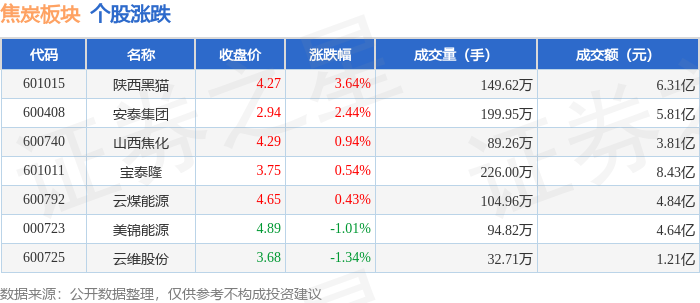 证券之星消息,10月27日焦炭板块较上一交易日上涨0.43%,陕西黑猫领涨。当日上证指数报收于3996.94,上涨1.18%。深证成指报收于13489.4,上涨1.51%。焦炭板块个股涨跌见下表: