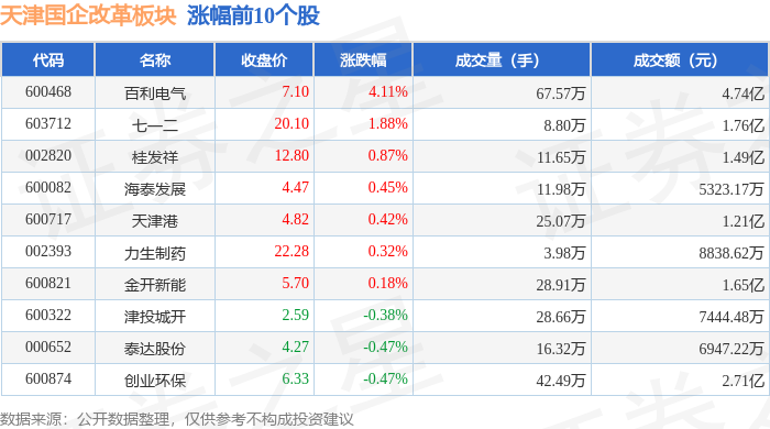 证券之星消息,10月27日天津国企改革板块较上一交易日上涨0.4%,百利电气领涨。当日上证指数报收于3996.94,上涨1.18%。深证成指报收于13489.4,上涨1.51%。天津国企改革板块个股涨跌见下表: