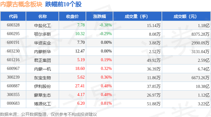 从资金流向上来看,当日内蒙古概念板块主力资金净流入7.82亿元,游资资金净流出3.79亿元,散户资金净流出4.02亿元。内蒙古概念板块个股资金流向见下表: