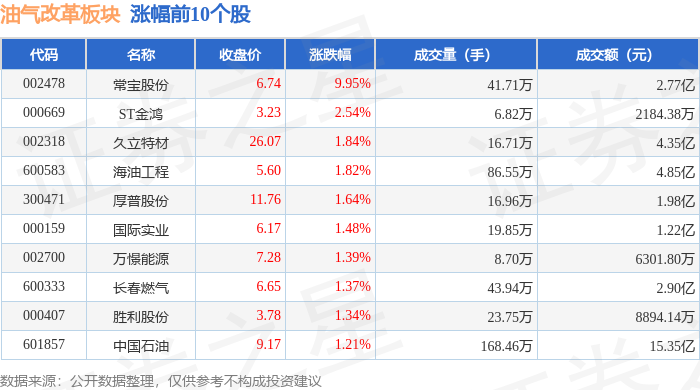 从资金流向上来看,当日油气改革板块主力资金净流出1.02亿元,游资资金净流出9597.62万元,散户资金净流入1.98亿元。油气改革板块个股资金流向见下表: