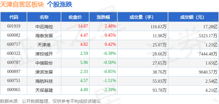 从资金流向上来看,当日天津自贸区板块主力资金净流入2.13亿元,游资资金净流出1.24亿元,散户资金净流出8900.25万元。天津自贸区板块个股资金流向见下表: