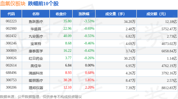 证券之星消息,10月27日血氧仪板块较上一交易日上涨0.77%,乐普医疗领涨。当日上证指数报收于3996.94,上涨1.18%。深证成指报收于13489.4,上涨1.51%。血氧仪板块个股涨跌见下表:
