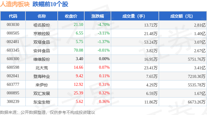 从资金流向上来看,当日人造肉板块主力资金净流入3.96亿元,游资资金净流出4574.18万元,散户资金净流出3.5亿元。人造肉板块个股资金流向见下表: