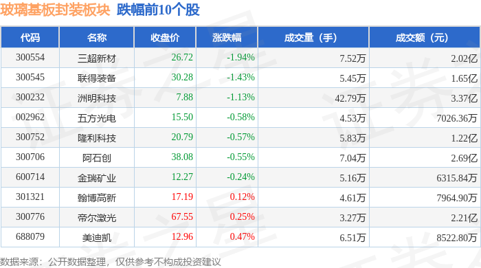 从资金流向上来看,当日玻璃基板封装板块主力资金净流入6.18亿元,游资资金净流出3.03亿元,散户资金净流出3.15亿元。玻璃基板封装板块个股资金流向见下表: