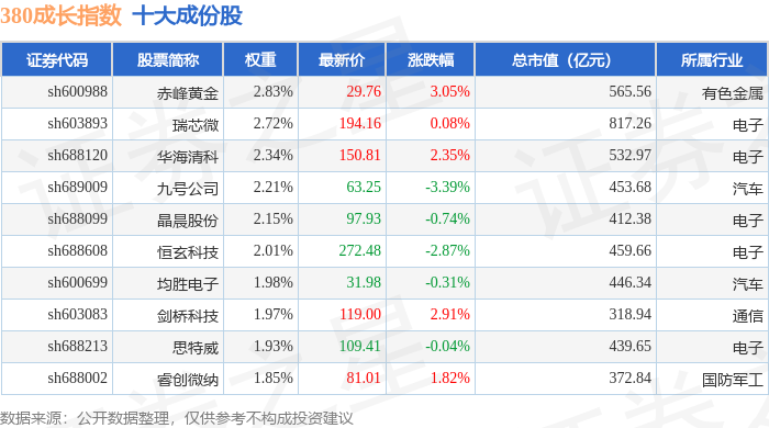 380成长(000117)指数十大成份股详情如下: