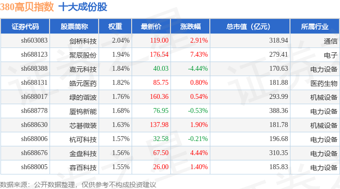 证券之星消息,10月27日,380高贝(000137)指数报收于5976.5点,涨1.42%,成交794.0亿元,换手率3.07%。当日该指数成份股中,上涨的有71家,景旺电子以10.0%的涨幅领涨,下跌的有28家,嘉元科技以4.44%的跌幅领跌。