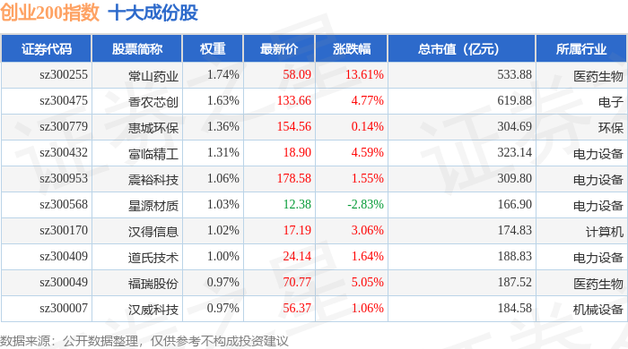 创业200(399019)指数十大成份股详情如下:
