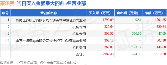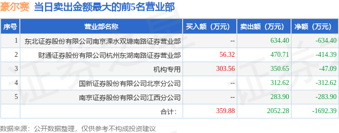证券之星消息,沪深交易所2025年10月27日公布的交易公开信息显示,豪尔赛(002963)因日跌幅偏离值达到7%的前5只证券登上龙虎榜。此次是近5个交易日内第1次上榜。