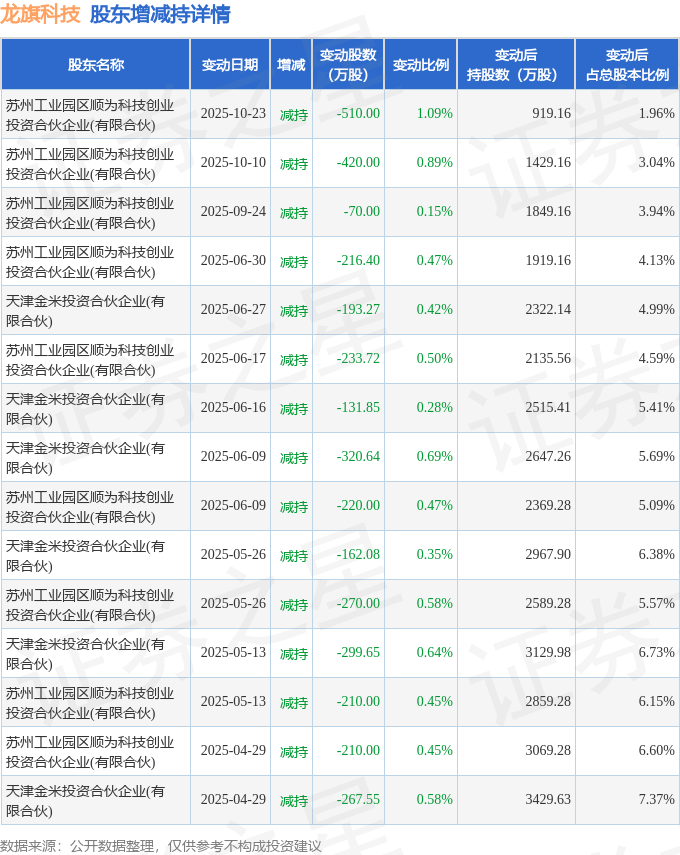 截至2025年10月27日收盘,龙旗科技(603341)报收于45.87元,上涨0.15%,换手率2.75%,成交量7.33万手,成交额3.37亿元。