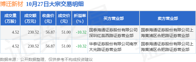 证券之星消息,10月27日博迁新材发生大宗交易,交易数据如下: