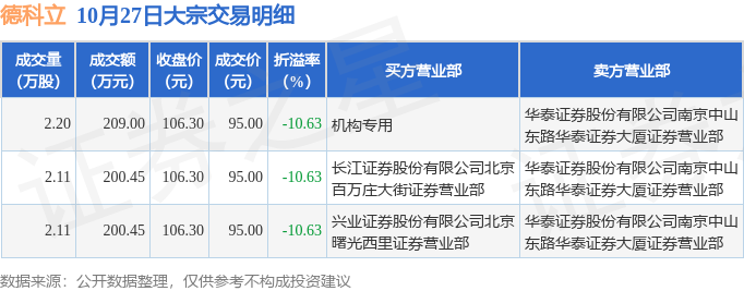 证券之星消息,10月27日德科立发生大宗交易,交易数据如下: