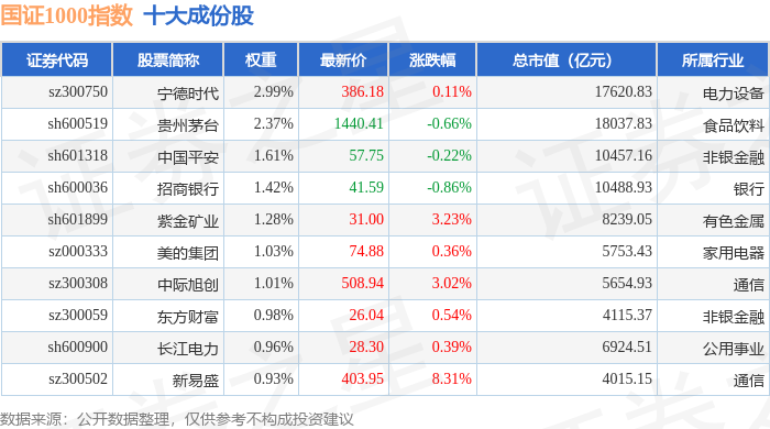 证券之星消息,10月27日,国证1000(399311)指数报收于5000.91点,涨1.32%,成交12818.33亿元,换手率1.21%。当日该指数成份股中,上涨的有724家,江波龙以19.82%的涨幅领涨,下跌的有247家,惠泰医疗以13.44%的跌幅领跌。