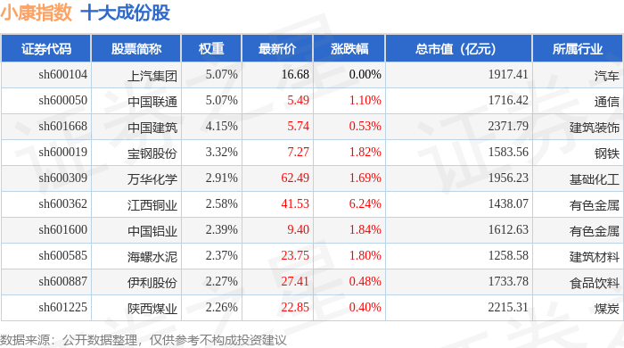 证券之星消息,10月27日,小康指数(399901)报收于6416.88点,涨1.24%,成交1476.97亿元,换手率0.99%。当日该指数成份股中,上涨的有75家,东方电气以6.29%的涨幅领涨,下跌的有22家,传音控股以2.2%的跌幅领跌。