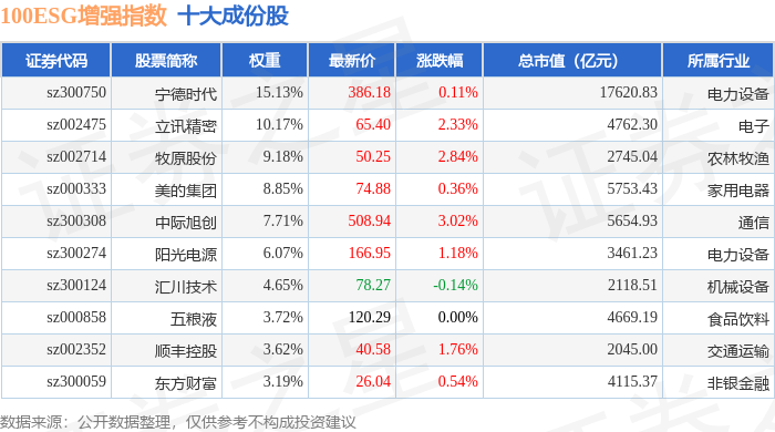 证券之星消息,10月27日,100ESG增强(970033)指数报收于1569.14点,涨1.23%,成交1570.11亿元,换手率1.76%。当日该指数成份股中,上涨的有29家,鹏鼎控股以6.87%的涨幅领涨,下跌的有10家,亿纬锂能以4.19%的跌幅领跌。