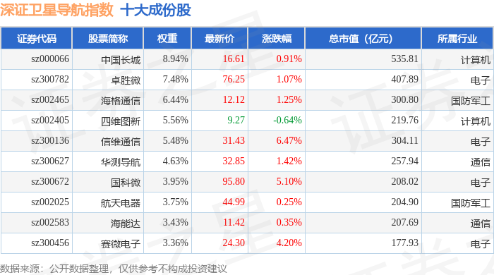 证券之星消息,10月27日,深证卫星导航(970050)指数报收于3200.01点,涨1.48%,成交199.19亿元,换手率3.71%。当日该指数成份股中,上涨的有28家,信维通信以6.47%的涨幅领涨,下跌的有13家,启明信息以5.97%的跌幅领跌。