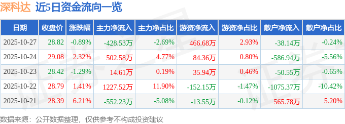 10月27日的资金流向数据方面,主力资金净流出428.53万元,占总成交额2.69%,游资资金净流入466.68万元,占总成交额2.93%,散户资金净流出38.14万元,占总成交额0.24%。