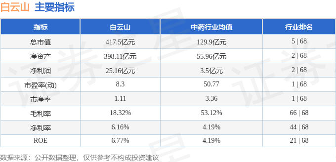 白云山2025年中报显示,公司主营收入418.35亿元,同比上升1.93%;归母净利润25.16亿元,同比下降1.31%;扣非净利润22.06亿元,同比下降5.78%;其中2025年第二季度,公司单季度主营收入193.61亿元,同比上升6.99%;单季度归母净利润6.95亿元,同比上升17.48%;单季度扣非净利润5.31亿元,同比上升4.68%;负债率51.7%,投资收益2.21亿元,财务费用1.23亿元,毛利率18.32%。白云山(600332)主营业务:(1)中西成药、化学原料药、天然药物、生物医药、化学原料药中间体的研究开发、制造与销售;(2)西药、中药和医疗器械的批发、零售和进出口业务;(3)大健康产品的研究开发、生产与销售;(4)医疗、健康管理、养生养老等健康产业投资等。
