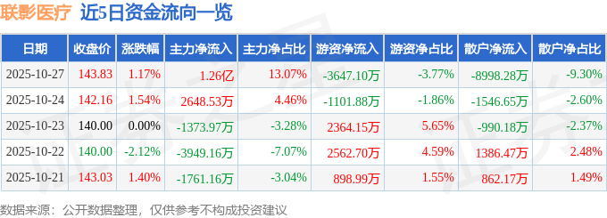 证券之星消息,截至2025年10月27日收盘,联影医疗(688271)报收于143.83元,上涨1.17%,换手率0.81%,成交量6.66万手,成交额9.67亿元。