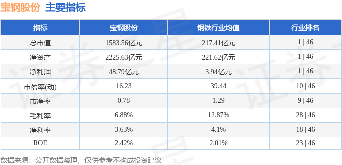 宝钢股份2025年中报显示,公司主营收入1513.72亿元,同比下降7.28%;归母净利润48.79亿元,同比上升7.36%;扣非净利润47.4亿元,同比上升11.92%;其中2025年第二季度,公司单季度主营收入784.93亿元,同比下降4.79%;单季度归母净利润24.45亿元,同比下降6.63%;单季度扣非净利润23.41亿元,同比下降11.97%;负债率39.87%,投资收益10.77亿元,财务费用5.28亿元,毛利率6.88%。宝钢股份(600019)主营业务:专注于钢铁业,同时从事与钢铁主业相关的加工配送、化工及信息科技等业务。