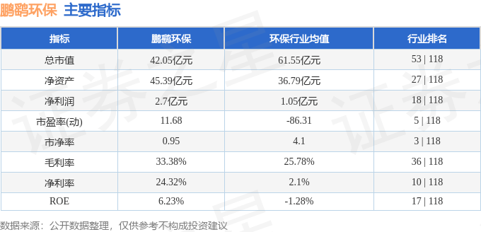 鹏鹞环保2025年三季报显示,公司主营收入11.36亿元,同比下降13.44%;归母净利润2.7亿元,同比上升28.94%;扣非净利润1.67亿元,同比下降1.79%;其中2025年第三季度,公司单季度主营收入3.87亿元,同比下降0.98%;单季度归母净利润8470.87万元,同比上升75.37%;单季度扣非净利润7063.51万元,同比上升37.26%;负债率42.36%,投资收益-129.29万元,财务费用6257.4万元,毛利率33.38%。鹏鹞环保(300664)主营业务:长期专注于环保水处理领域,可提供环保水处理相关的研发、咨询与设计、设备生产及销售、工程承包、项目投资及运营管理等一站式服务,是环保水处理行业的全产业链综合服务提供商。