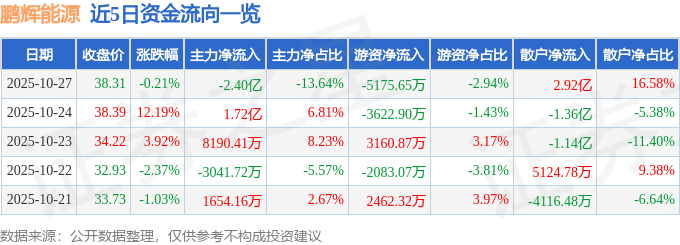 证券之星消息,截至2025年10月27日收盘,鹏辉能源(300438)报收于38.31元,下跌0.21%,换手率11.3%,成交量45.68万手,成交额17.59亿元。