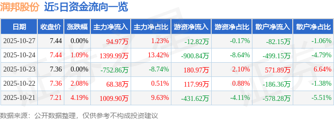 证券之星消息,截至2025年10月27日收盘,润邦股份(002483)报收于7.44元,上涨0.0%,换手率1.18%,成交量10.44万手,成交额7750.83万元。