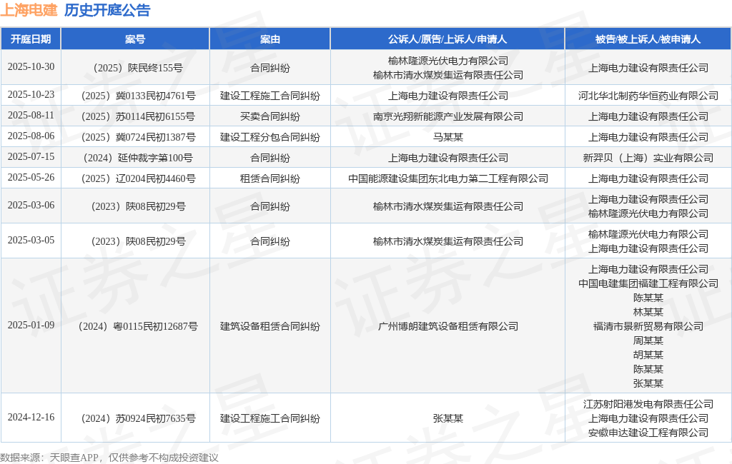 证券之星消息,根据天眼查APP显示,近日公布了一则上海电力建设有限责任公司作为被告/被上诉人的开庭公告,详细内容如下: