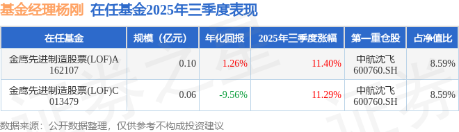 证券之星消息,截止2025年三季度末,基金经理杨刚旗下共管理2只基金,本季度表现最佳的为金鹰先进制造股票(LOF)A(162107),季度净值涨11.4%。