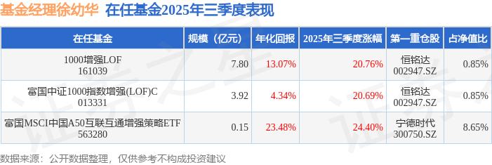 证券之星消息,截止2025年三季度末,基金经理徐幼华旗下共管理3只基金,本季度表现最佳的为富国MSCI中国A50互联互通增强策略ETF(563280),季度净值涨24.4%。