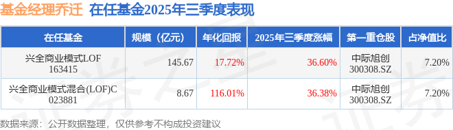 证券之星消息,截止2025年三季度末,基金经理乔迁旗下共管理2只基金,本季度表现最佳的为兴全商业模式LOF(163415),季度净值涨36.6%。