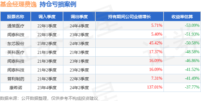 费逸管理的广发科创板两年定开混合基金在22年1季度买入通策医疗,在持有2年又3个季度后在24年4季度卖出。持有期间的估算收益率为-53.09%,持有期间通策医疗在2022年到2024年的年报营业总收入增幅达5.71%。